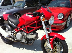 今日、人気ブログ「タイヤが2つ」でお馴染みのさりこさんが新しい愛車のドゥカティのMで当社に遊びに来てくれました!
