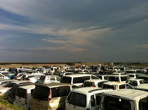 そしてしばらく走っていると何とまだナンバープレートが付いたままの車も沢山ある水没に遭ってしまった車が沢山見えて来ました。