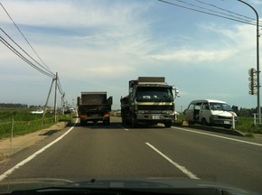 そのガレキ等を運んでいるのでしょうか?沢山のダンプカーが行ったり来たりしています。