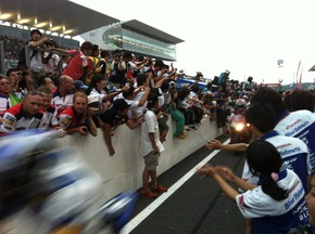 今回はいつも真っ暗な中でしか見れなかったゴール後にメインスタンド前を回り、チームの方々にも祝福される為にピットロードに逆走で入って来るシーンを掲載します!