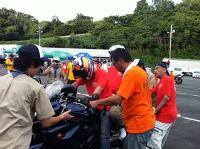 この企画の内容は一つ前の記事でも去年の様子をリンク出来る様にしてありますが身体にハンディを負ってしまっている方々に喜んで頂こうと願い、プロライダー達でそんな方々とタンデム(二人乗り)をして「鈴鹿8時間耐久オートバイレース」の激戦の繰り広げられる鈴鹿サーキットのフルコースを一緒に走って貰おう!と言うもの。