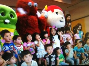 この暑い時期にガチャピンやムックも避難所を訪れて皆さんを応援していました!