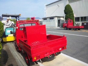 ヘルメットをかぶって!と言われた私は車を下ろしKさんと途中で来て頂いた防災隊長さんと色々な話をしその後大先輩のミニ消防車を積んで納車が終了となりました!