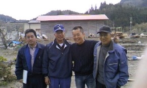 写真の皆さんは私達が村上さんと話している時に村上さんを久し振りに訪ねて来た同業者の方と大工さん!