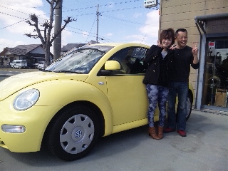 普段も接客の仕事をしている彼女の職場はいつもこの黄色いNEWビートルの様に楽しい雰囲気になっている事でしょうね。