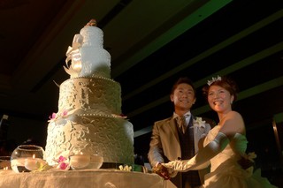 RUKAちゃんはまさにピッタリと言う感じでどこかで私も安心をしていました! このウェディングケーキ入刀の時には招待をされているプロのカメラマンを含め凄い人数の方々が写真を撮っていました!