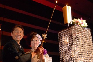 各テーブルを回って挨拶をし皆さんのいるテーブルの一つ一つのキャンドルに火をともしている2人はやはりとても幸せそう・・・・・・周りの皆さんの盛り上がり方で普段太郎がいかに色々な方々を大切にしているかが解るようでした。