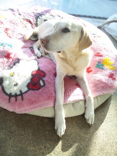 本当はアップでは無かった気がしますがイルピーちゃんは私の言葉では無く手振りを見てでしょうか立ち上がってくれて歩き出し、日陰の所まで来た時にシット!?とまたまた訳の解らない私の言葉に従って床に伏せてくれこの写真が撮れた訳です!