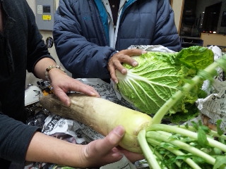 そしていつも色々な面でお世話になっているHくんからは超デッカイ白菜と大きな大根を頂きました!