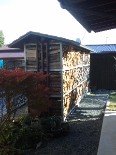 家の外には暖房の為の薪ストーブの薪が沢山用意され綺麗に積まれていました。