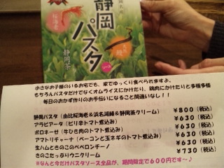 鰻と桜エビと抹茶の入った「静岡パスタ」や私の大好きな「キノコたっぷりウニクリームのパスタ」もその価格であるとの事!