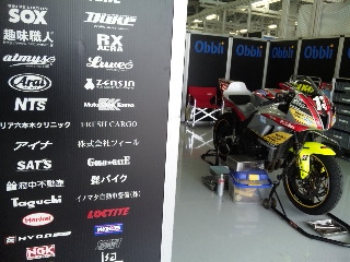 彼のスポンサーさんへの気遣いは本当に感心させられます。ピットの前にはこの様に外からしっかりと見える所に色々なスポンサーさんの名前の入ったボードが飾られていました。