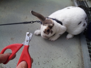 この後はいつも通りに上向きにしてヒザで耳を挟み、全く動け無い情けない姿になっているぴっとの爪を切りました。