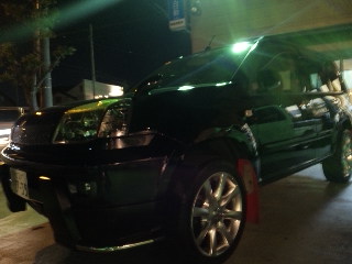 水銀灯の下で一緒に改めて見るエクストレイルは当社のメカニックがキチンと整備をしピカピカに仕上げてくれてあり新車の様!