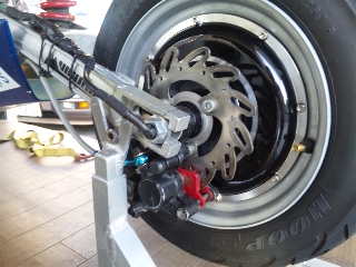 しっかりとした走行フィーリングはスプリントに絞った2000W(ワット)クラスのモーターでも積めばミニバイクコースでかなりの走りをしそうです。