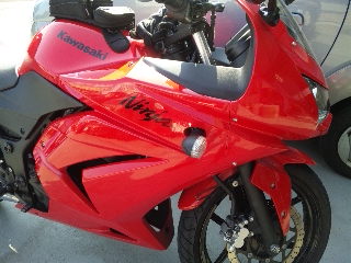 西からはアメブロで人気の女性ライダー「タイヤが2つ」のさりこさんが赤のカワサキNINJA250Rで高速を使っての来店。