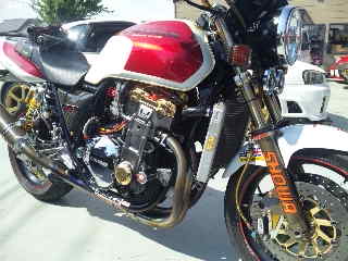 CB1000にたっぷりと手を入れているのは何とまたまた登場のミゼットIIのオーナーのスギp
