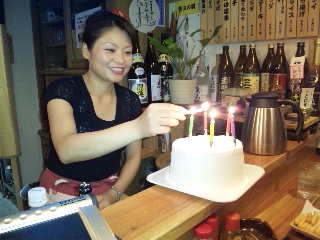 皆が「酸欠で倒れるのではないか!」と心配する中で、歳の数をおおまかに省略したローソクの火をマスターが吹き消しました!