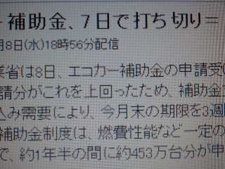 一昨日も確かテレビで補助金が終わっちゃう前に急げ!って感じの事をCMで言ってた様な気がしましたが、翌日には「本日の日付の分は対象外とさせていただきます‥‥」何て事になってしまいました。