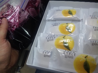 昨日も遠くに出張された方がお土産の高知の柚子サブレを持って来てくれ、紅一点の役員さんがブルーベリーの手作りジャムを持って来てくれました!