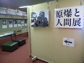 袋井市役所の2階の市民ギャラりーで「原爆と人間展」が行われています。