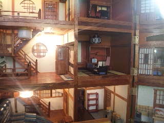 お城を作っていたおじさんの玄関にわたしとMさんが招待されると綺麗な祭りの屋台の模型がありました。