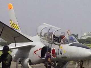 実際に燃料補給を終え、矢の様に空に飛び立とうとするT-4練習機(TはトレーニングのTだそうです!)を目の前で見る事が出来ます!