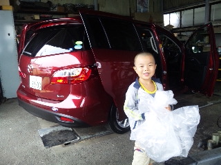 一緒に息子さんも新車独特のシートのビニールを一生懸命に剥がしていて新車らしい光景が笑顔と共に見られました!