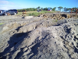 もっと荒い波の時には堤防の所にまで波が来ているほど砂浜が侵食されています。