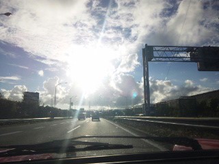 帰る方向の空を見ると太陽と雲がとても綺麗!