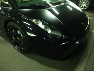 写真は途中で見た黒のランボル。ボンネットの塗り方がとっても面白く、左右の一部分が「艶消し!」であえて塗ってあるんです!