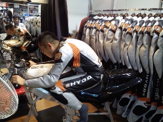 昨日も私と一緒にレース中に体を守る皮のツナギの引き取りに浜松のヒョウドウプラスさんに寄り色々な仕上がり具合のチェック。