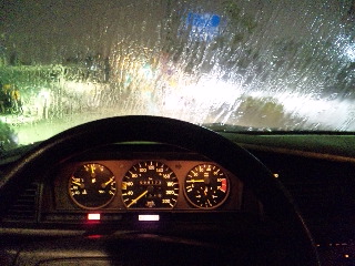 久々ですが大雨で殆ど前が見えず、トラックの運転手の方々と共に自然に高速道路を60キロ位で走らなければいけない状況になりました!
