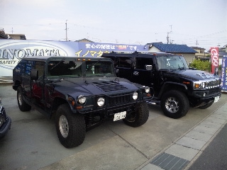 見ての通りのアメ車のハマー1とハマー2なんですがこの2台だけで我社の雰囲気がガラリと変りました!
