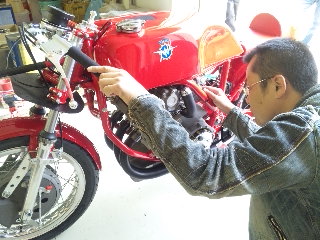 何もかもがピカピカしているなんと「新車」のこのマシン! 見ているだけでも私の知る限りの色々なレースのシーンが浮かんで来ました!!
