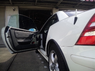 メルセデスベンツのコンパクトスポーツ、SLK320の車検に来ています。
