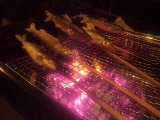 それをどまん中さんの店の外で炭火で焼くんですがこれがまた良い雰囲気なんです♪