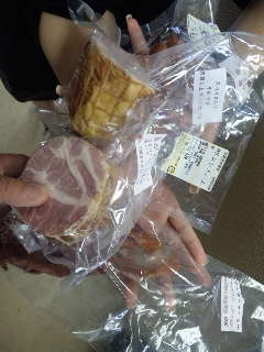 今日、とっても美味しいハムやソーセージや私の大好きな手間の掛かったポークジャーキー等を個人で製造販売している「森町の入鹿ハムさん」から、こちらがお世話になっているのにも関わらずとても可愛い使いの方が差し入れを持って遊びに来てくれました!