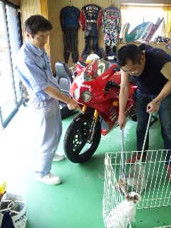 前回も壁の汚れを落として貰おうと仕事を依頼しましたが、今回はバイク置き場を汚してしまうウサギのぴっとと管理人の私が厳しい指導を受けました・・・・・・・(笑)