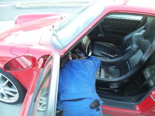 私が大好きな92年式ポルシェカレラRSのバケットシートをデモカーに次男が取り付けています!