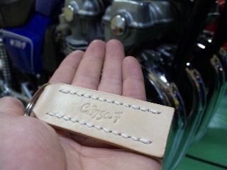 それは間違いなく温かなセンスの良い「手造り」と解る皮のキーホルダー、そして片面に「WE LOVE BIKE」、もう一方に「CB750F!」と私の愛機のFの文字が押された文字で刻まれていました。