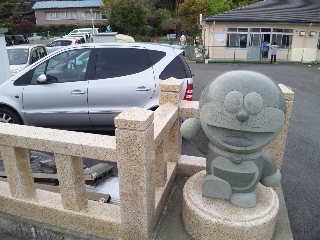到着すると何と入り口の門の所に石で出来たデッカイ「ドラえもん!」の石像がありました!
