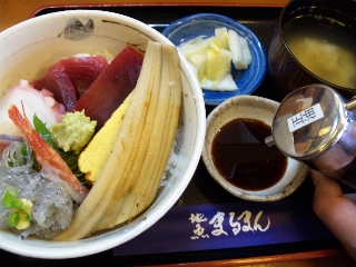 そして昨日は久し振りに高速道路の「そば」でなく、焼津インターを降りた所にある「魚センターの北側!」にある食堂の「まるまん」さんに久し振りに海鮮丼を食べに寄りました。