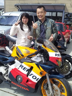 この純正色の様に綺麗にレプソルカラーにペイントされたCBRで遊びに来てくれた楽しいチャレンジャーのぞみんさん!