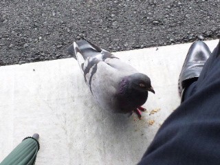 鳩が数羽私の周りにいたんですが妙に一羽だけ何だかとても近くまで寄ってくるんです。