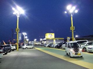 何と今まで見た中では一番大きな中古車センターです!! 看板には平気!?で「500メートルの試乗コース」なんて書かれています!敷地内ですよ!!