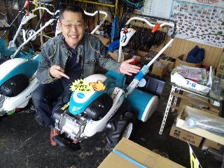 大体の話は聞いていましたが実際に来て見て「好奇心の鬼!」の私の目に色々な農機具や小型の耕うん機が飛び込んで来ました!色々な作業時間が短縮出来て身体も痛めずに済みそうですし、手頃な価格になってます!!