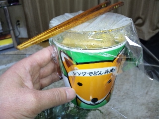 今回はきつねうどんだった為、揚げの大きさがカップに合わせてあり小さな事もがっかりしました!(笑)