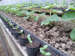 まず、苗から育てます!この時から温室の温度を一定に保つ為にボイラーが焚かれとても沢山の燃料が使われている事を知りました。