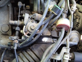 このモデルのキャブレターはミゼットIIでも初期モデルに使われていたエンジンの物で、水温の上がり下がりで膨張するワックスと言う物の作用を利用しギヤを動かしてチョークを閉じたり開いたりする機構なんですが、どうやら水温に反応せず壊れているようです。